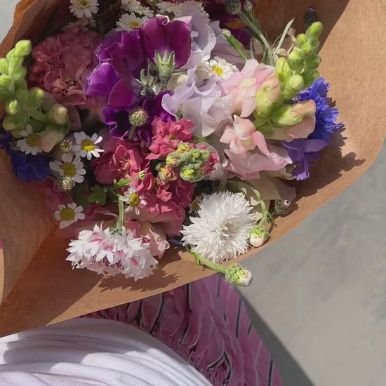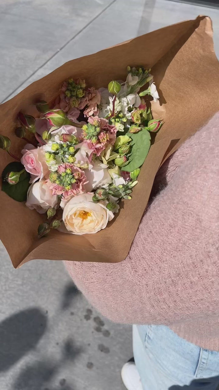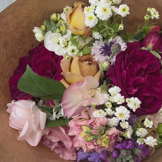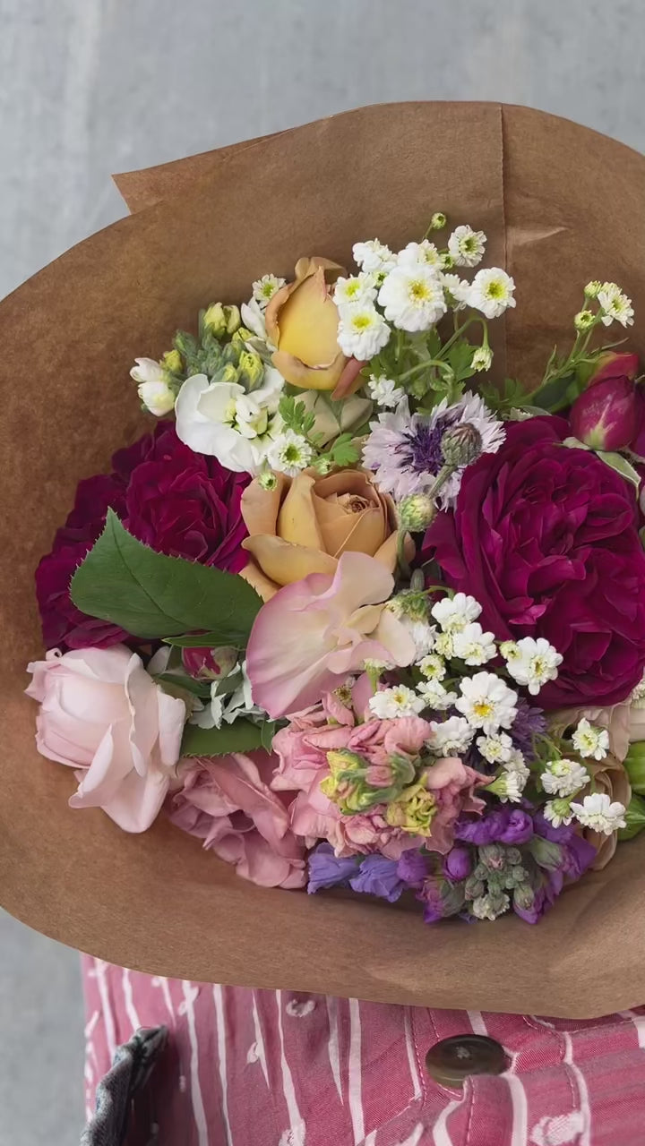 Every other week from early/mid April-June, you’ll receive a lush mix of tulips, anemones, lilac, roses, sweet peas and other seasonal blooms — thoughtfully arranged and wrapped in kraft paper.