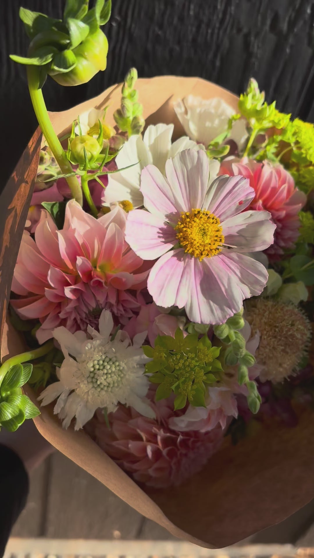 Starting the first week of July, enjoy weekly arrangements featuring zinnias, snapdragons, dahlias, and other summer favorites — harvested at their peak and wrapped for easy pickup or gifting.